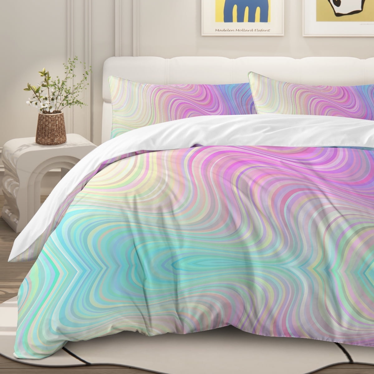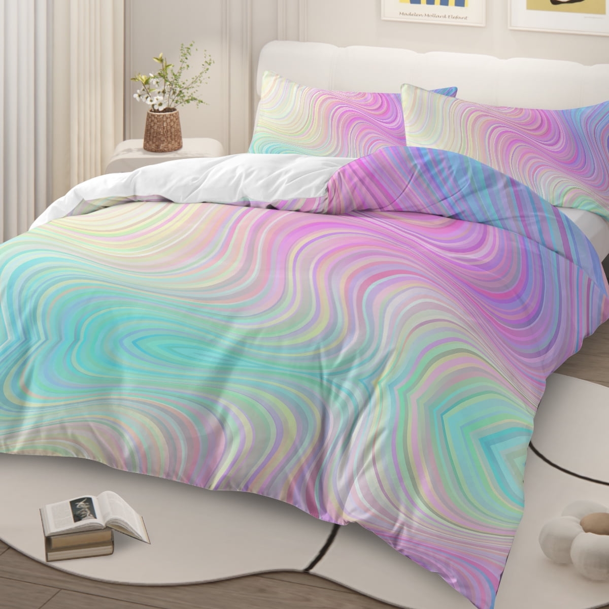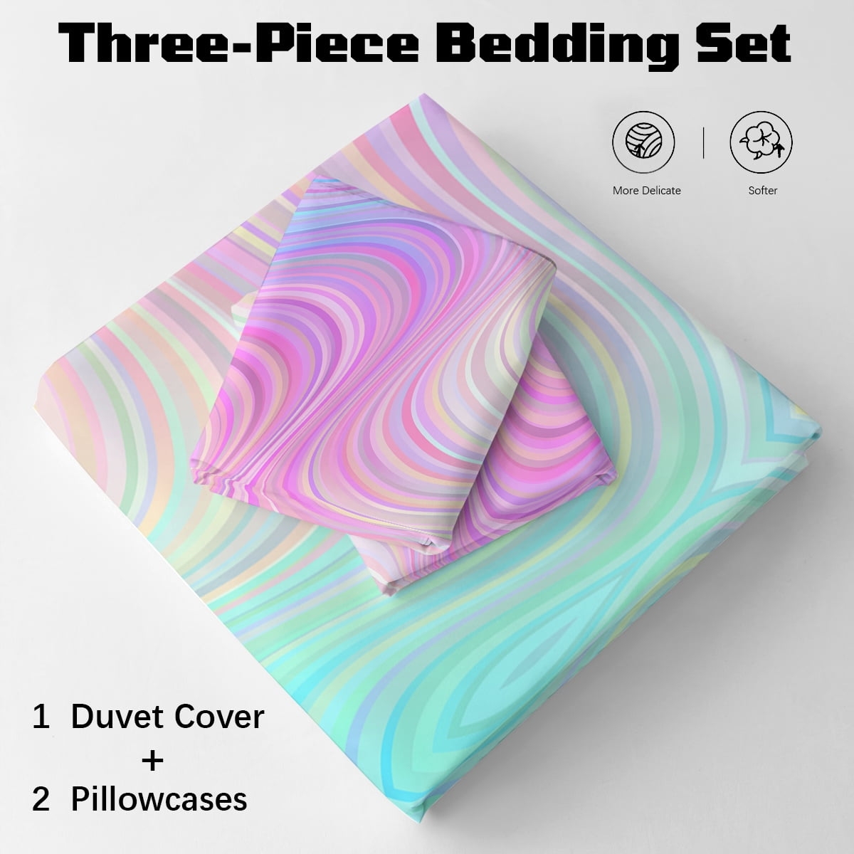 Sleepwish Colorful Duvet Cover for Girls, 3 Piece Marble Gradient Kids Bedding Sets Full Bed Covers Set